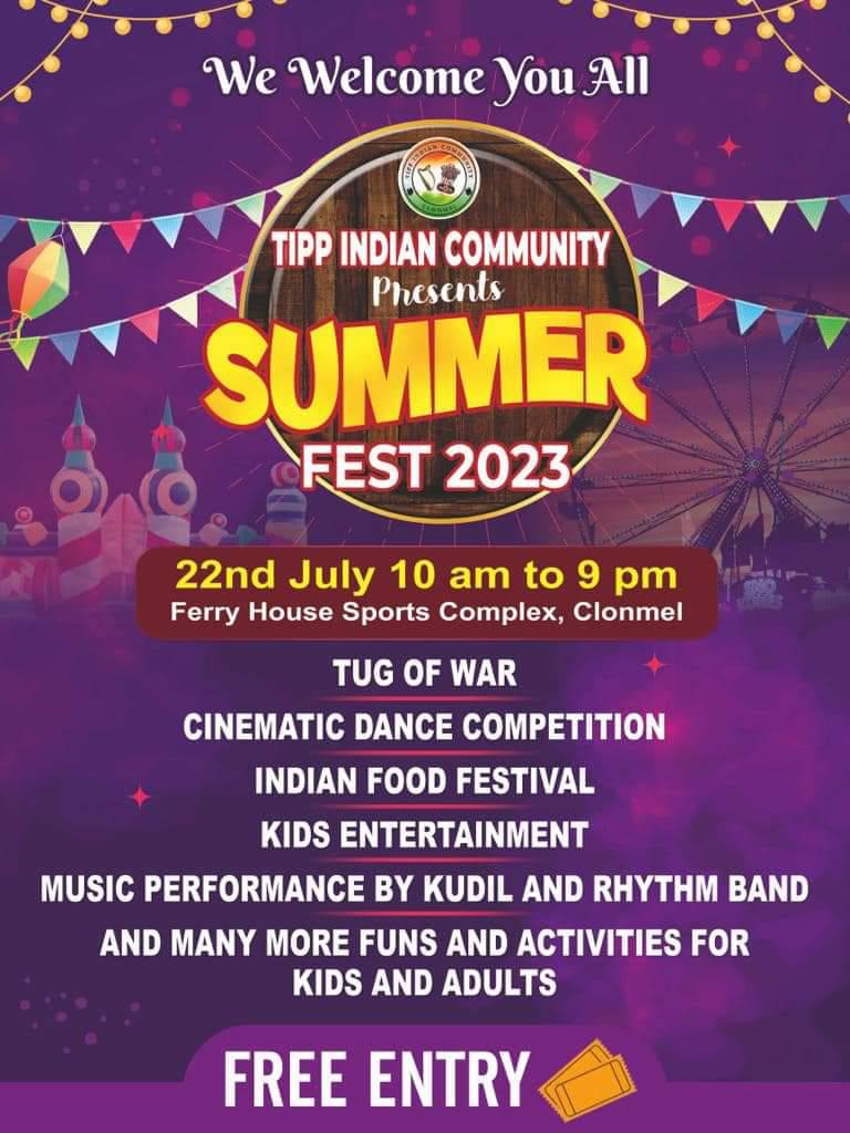 The Tipp Indian Community in Ireland is all set to host a family fun day called Summer Fest 2023 on 22 July 2023.